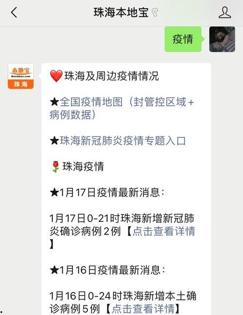 最近珠海的小伙伴们是不是都在密切关注着疫情的最新动态呢?这不,刚刚又有一些新鲜出炉的消息,让我来给你一一道来,让你对珠海的疫情形势有个全面了解。